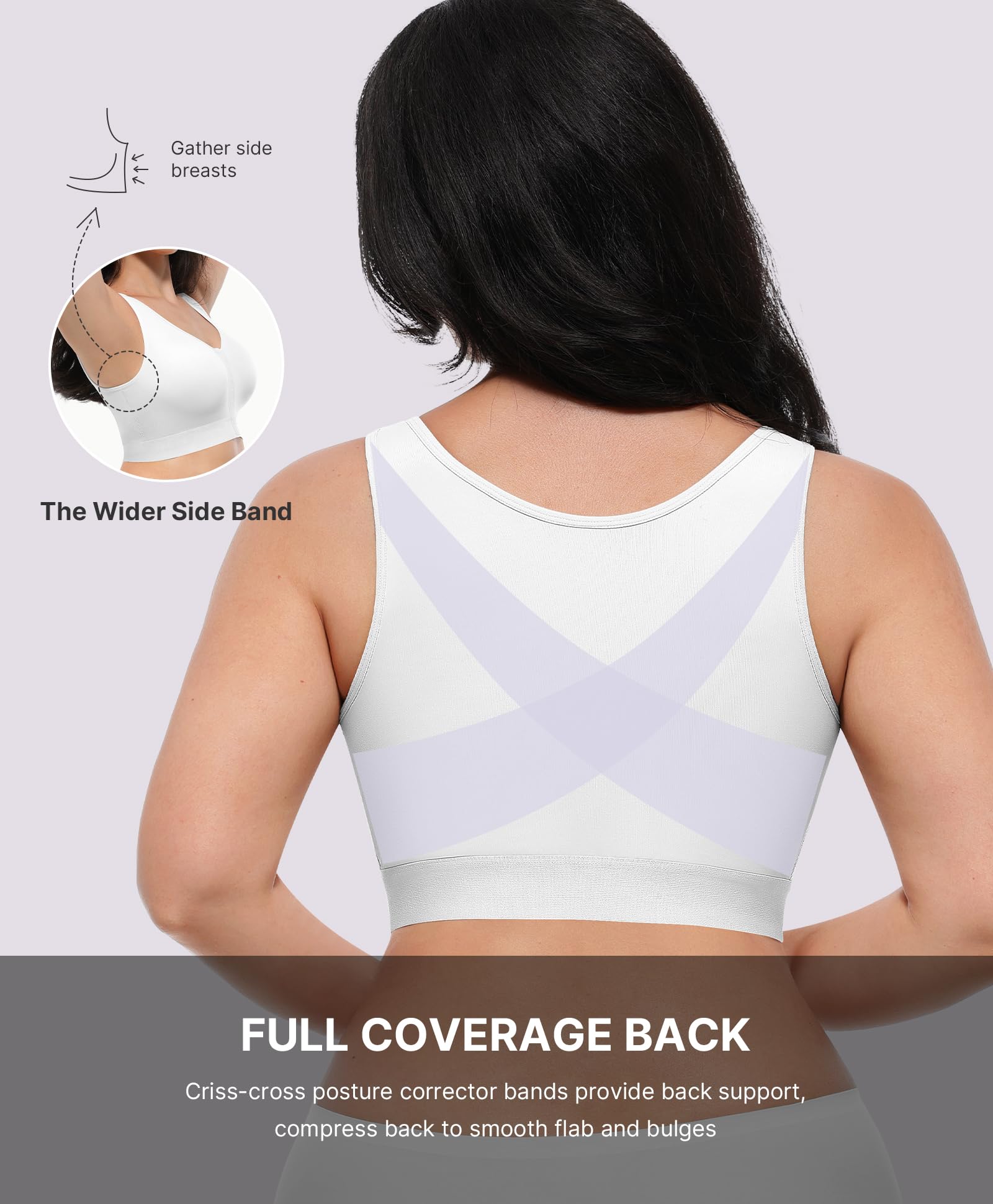 SHAPELLX Post Surgery Bras Front Closure Compression Bra Surgical Wirefree Mastectomy Bra with Adjustable Straps