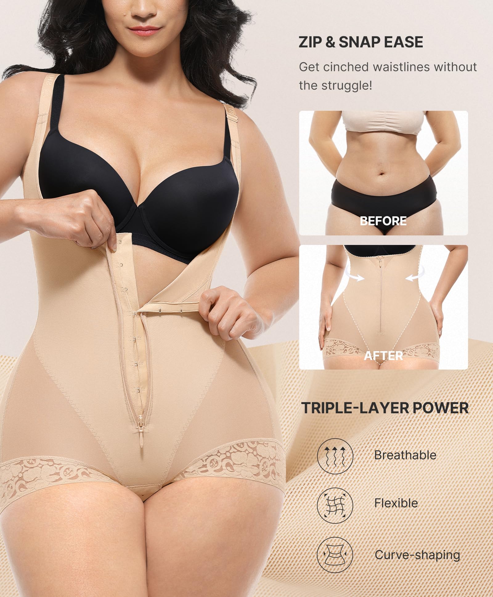 SHAPELLX Tummy Control Shapewear for Women Fajas Colombianas Body Shaper Open Bust Bodysuit Butt Lifter