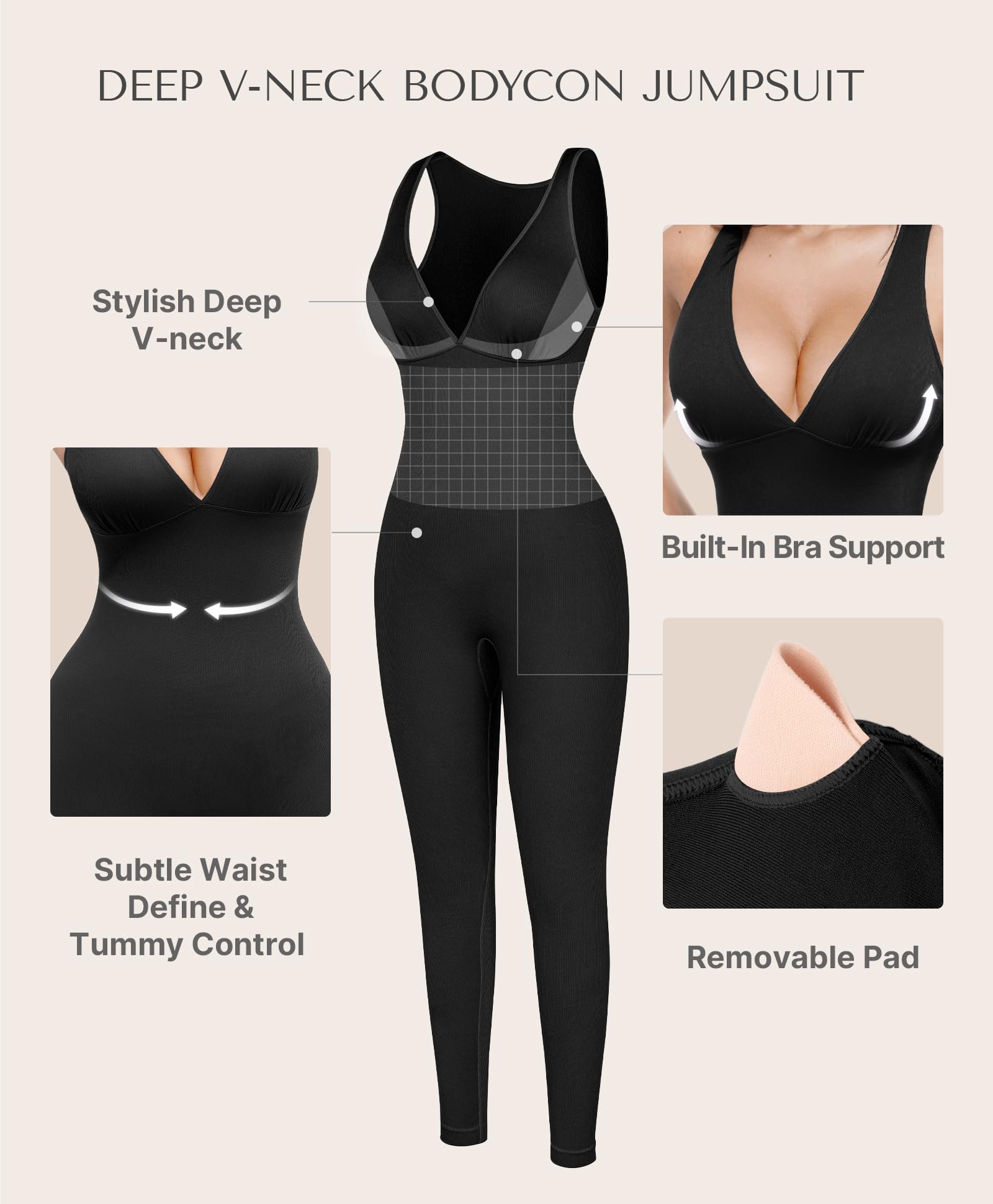 - SCULPTED BODYCON ALLURE: Featuring a higher-density weave at the waist for targeted shaping, it delivers gentle compression to smooth your midsection with light tummy control. Complemented by a sultry deep V-neck and stretchy bodycon fit, it hugs your shape to highlight natural curves. You’ll love your polished look—confidence shines through!