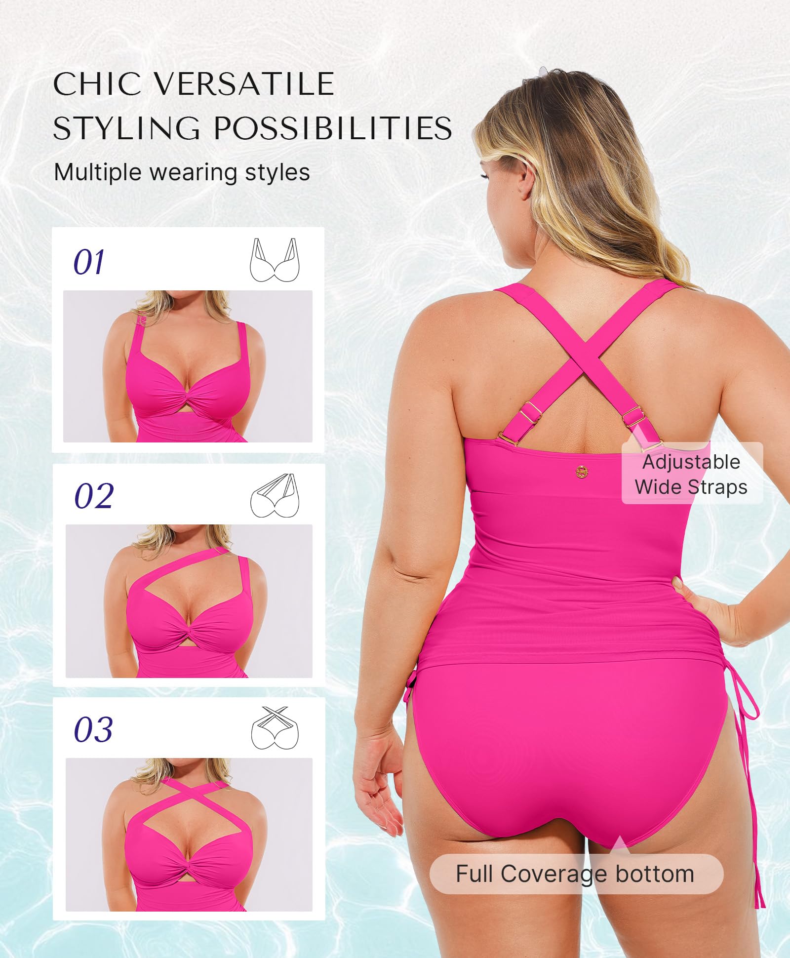 - SHAPE-ENHANCING FIT: Built-in shaping mesh delivers gentle tummy control at the midsection, smoothing curves seamlessly. Side support panels at the bust enhance lift, while the twisted front detail adds targeted support. This one piece sculpts your silhouette so you feel confident and radiant in your own skin.